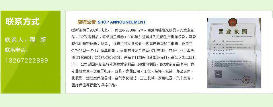 深圳市振新泡棉科技有限公司于2003年成立,廠房面積7800平方米。主營海棉發(fā)泡制品、PU發(fā)泡制品、EVA發(fā)泡制品、海棉加工機器。2006年引進國外先進的生產(chǎn)機械設(shè)備,配備現(xiàn)代化精密儀器、儀表 , 并自行開發(fā)多款新一代海棉異型加工機器,改良了QLY-06型一次性話筒套機器 , 現(xiàn)擁有多條半自動化生產(chǎn)線。 我們擁有一批經(jīng)驗豐富的工程技術(shù)人員和高級管理人員,在同行業(yè)中率先通過ISO9001:2008及ISO14001:產(chǎn)品原料均采用新型環(huán)保料,符合多國出口標(biāo)準(zhǔn)。 公司系國內(nèi)知名特殊海棉發(fā)泡制品、PU發(fā)泡制品、EVA發(fā)泡制品生產(chǎn)廠家,專業(yè)研發(fā)生產(chǎn)適用于電子、玩具、家居日用、工藝、裝飾、包裝、辦公文體、化妝品、運動類保健器材、空氣凈化過濾、工業(yè)機械、家用電器、汽車美容、醫(yī)療保健等行業(yè)的海棉產(chǎn)品。 產(chǎn)品的類型如:高密度聚酯海棉、普通海棉、異型定型海棉、防火/阻燃海棉、高回彈/慢回彈海棉、過濾網(wǎng)狀海棉、EVA玩具禮品、PU發(fā)泡定型玩具禮品等等。產(chǎn)品名稱如:耳機/話筒KTV海棉套、海棉圓球、洗刷海棉、吸水海棉、木漿海棉、化妝海棉、相機海棉、墨盒海棉、壓縮海棉、橡膠海棉、粗細孔過濾海棉、波峰隔音海棉、醫(yī)用海棉、海棉枕頭、包裝防震海棉、1mm厚海棉、電子/醫(yī)用海棉棉簽、EVA球、EVA智力拼圖、EVA鑰匙扣、PU座墊、PU公仔、PU球類等等。 我們還獲得多家國際知名廠商的授權(quán)資格,代理多品種家庭用品。 產(chǎn)品多年來一直銷往全球,深受廣大用戶和客商的青睞。